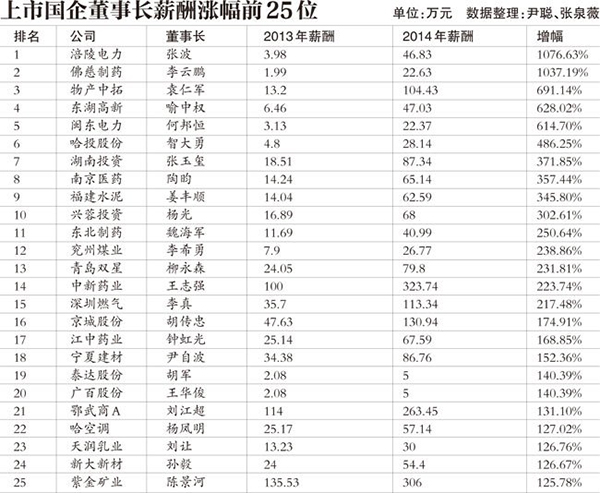 多家上市公司2014年业绩缩水,而董事长薪水反而“逆市”上涨。